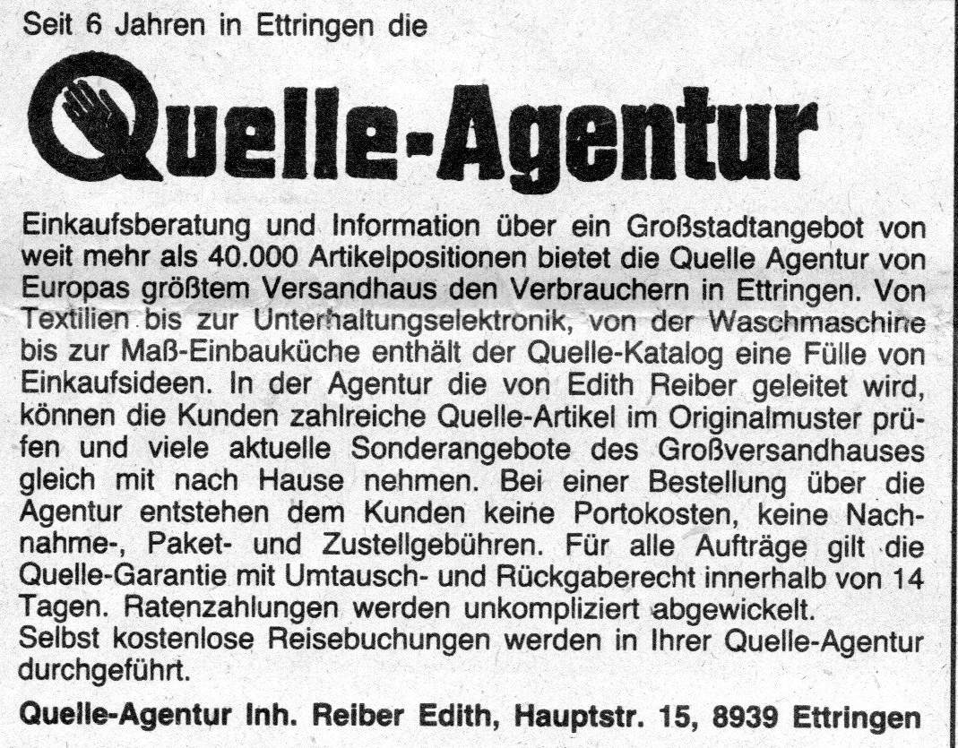 Lange bevor man Pakete per Klick bestellte, verfügte unsere Gemeinde bereits über ein hochmodernes Logistikzentrum: die legendäre ➡ Quelle-Agentur
