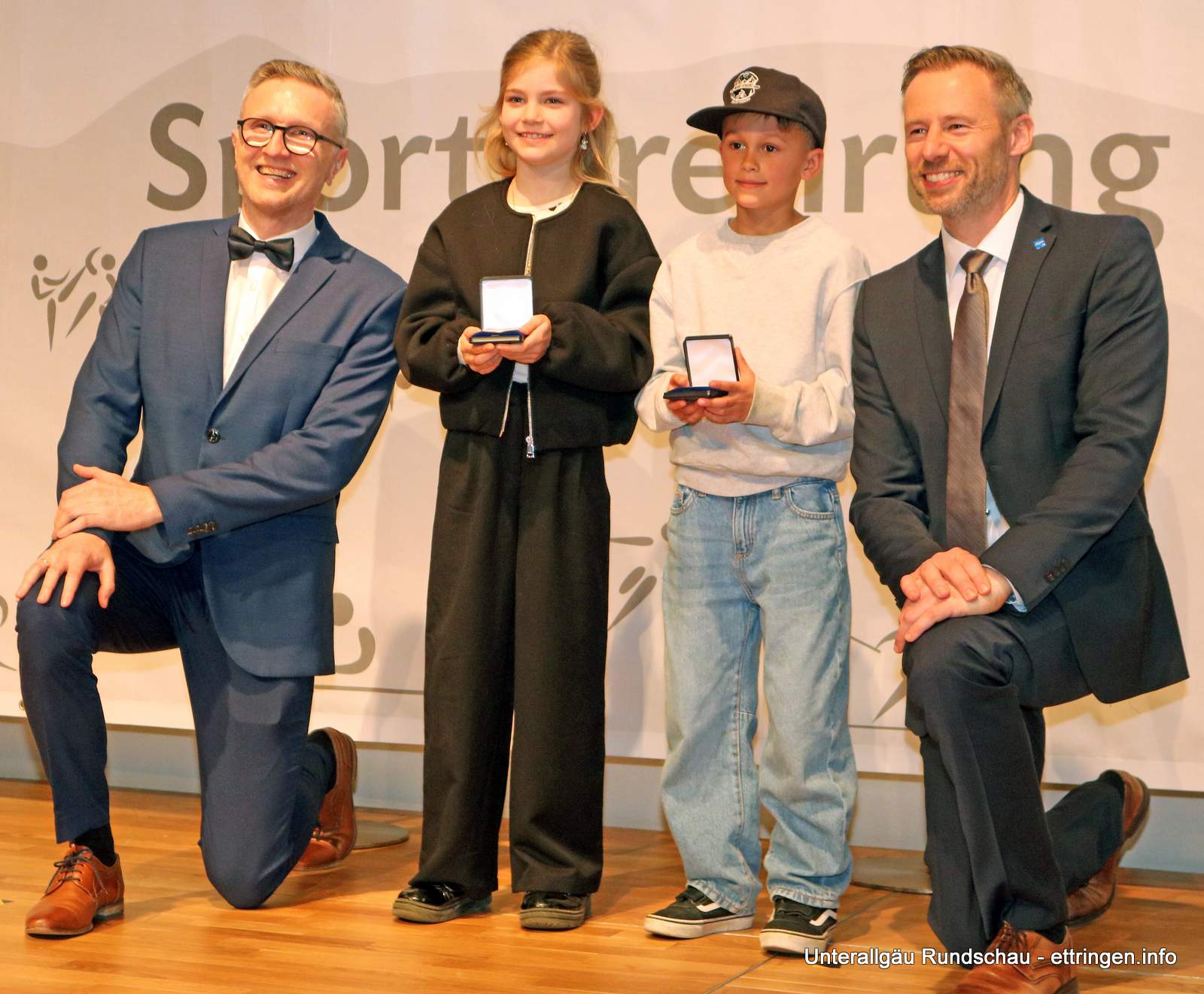 Für diese herausragenden Leistungen wurden sie bei der gestrigen Sportlerehrung des Landkreises Unterallgäu mit einer Medaille ausgezeichnet. Landrat Alex Eder (rechts) und der BLSV-Kreisvorsitzende Benjamin Adelwarth (links) überreichten die Auszeichnungen persönlich.