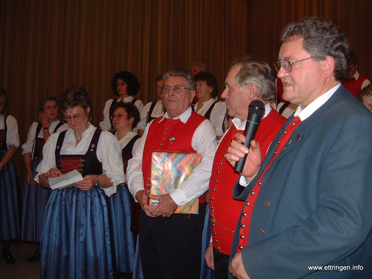 Anneluise Eberhart † wurde zum Ehrenmitglied ernannt und für 25 Jahre Chorgesang ausgezeichnet. Ottilie und Georg Lang † wurden für 30 Besuche beim Weinfest geehrt.