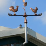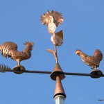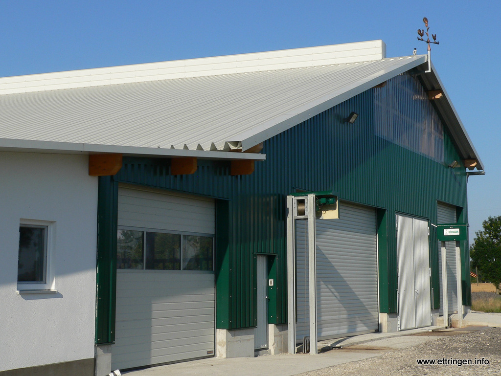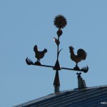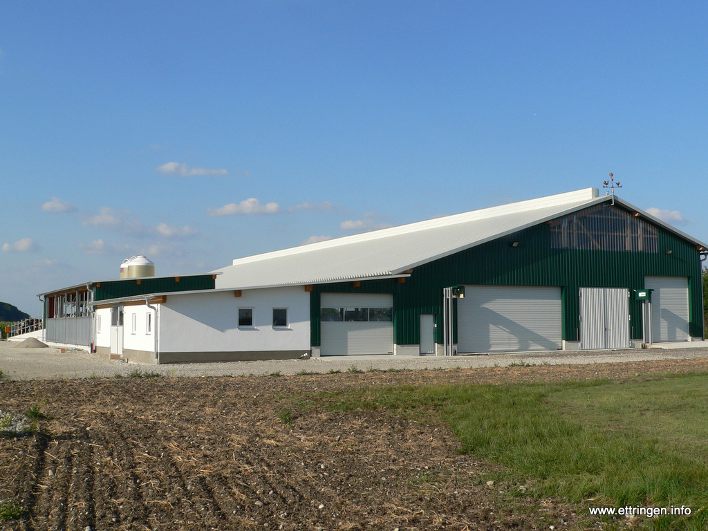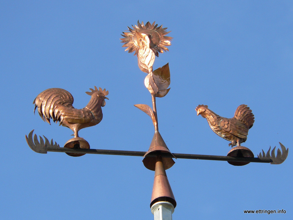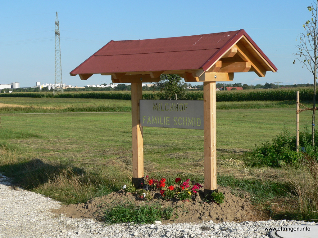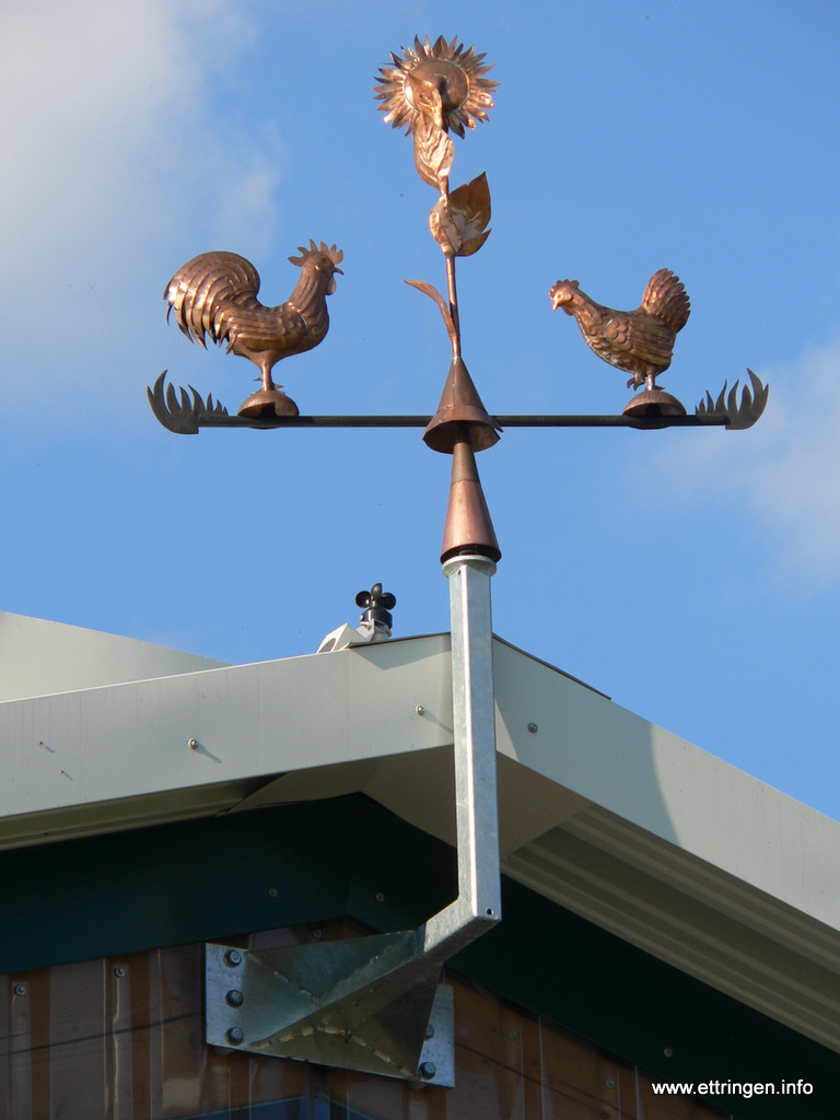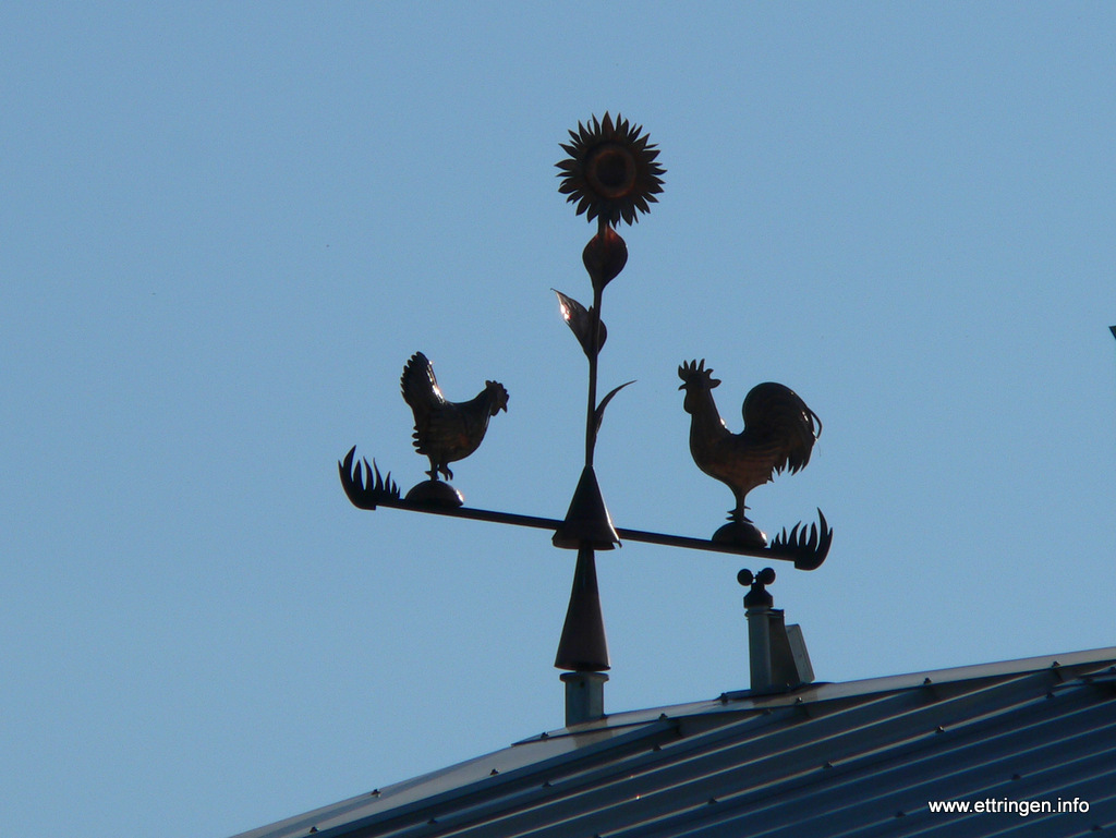 Ein kunstvolles Windspiel aus der Werkstatt von Johann Rindle in Ettringen schmückt den First des neu erbauten Milchhofes der Familie Schmid (Hausname „Rasso„) am Radweg nach Siebnach.