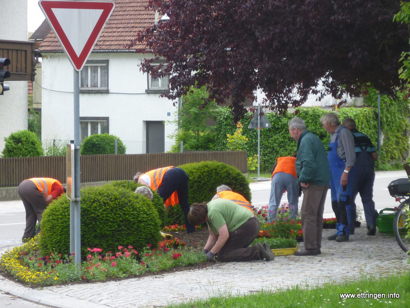 Von den Mitgliedern des Ettringer Gartenbauvereins wurden heute die gemeindlichen Anlagen (Brunnenplatz, Bahnhofsplatz, Kirchplatz und Mesnerhaus) bepflanzt.