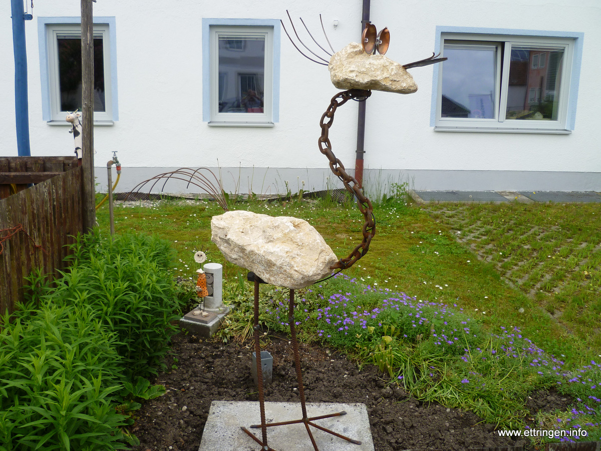 In der Hauptstraße ist seit kurzer Zeit ein „komischer Vogel“, vermutlich aus der Familie der Strauße, zu bestaunen.