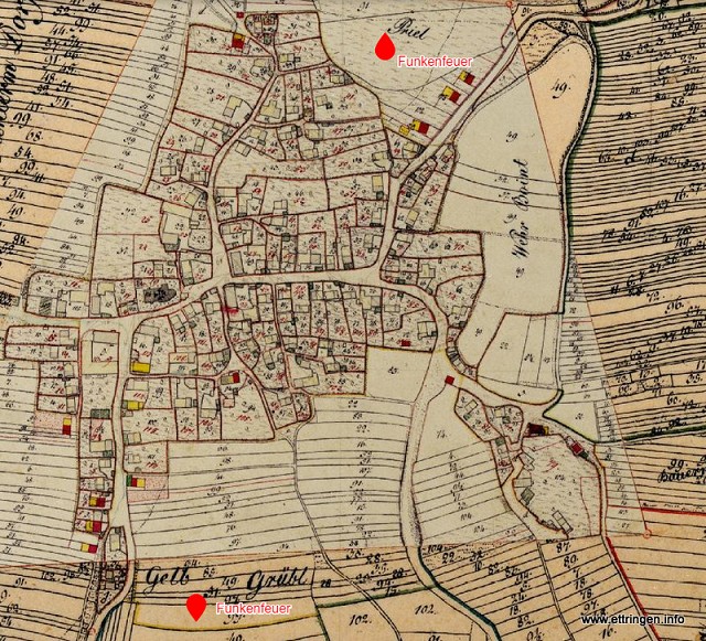 Selbst die reifere Jugend lag im Streite mit der im Inneren des Dorfes wohnenden; darum brannten die Hahnenbichler beim Gelbgrüble ein eigenes Feuer am Funkensonntag* ab und überließen das im Briel ihren Gegnern.“ ➡ (PDF) Text
