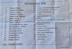 Im Mittelpunkt der Versammlung stand die Abstimmung über die vorbereitete Kandidatenliste für die kommende Gemeinderatswahl. Die Liste wurde einstimmig angenommen. Sie vereint erfahrene kommunalpolitische Kräfte mit jungen Kandidatinnen und Kandidaten, die sich erstmals zur Wahl stellen.