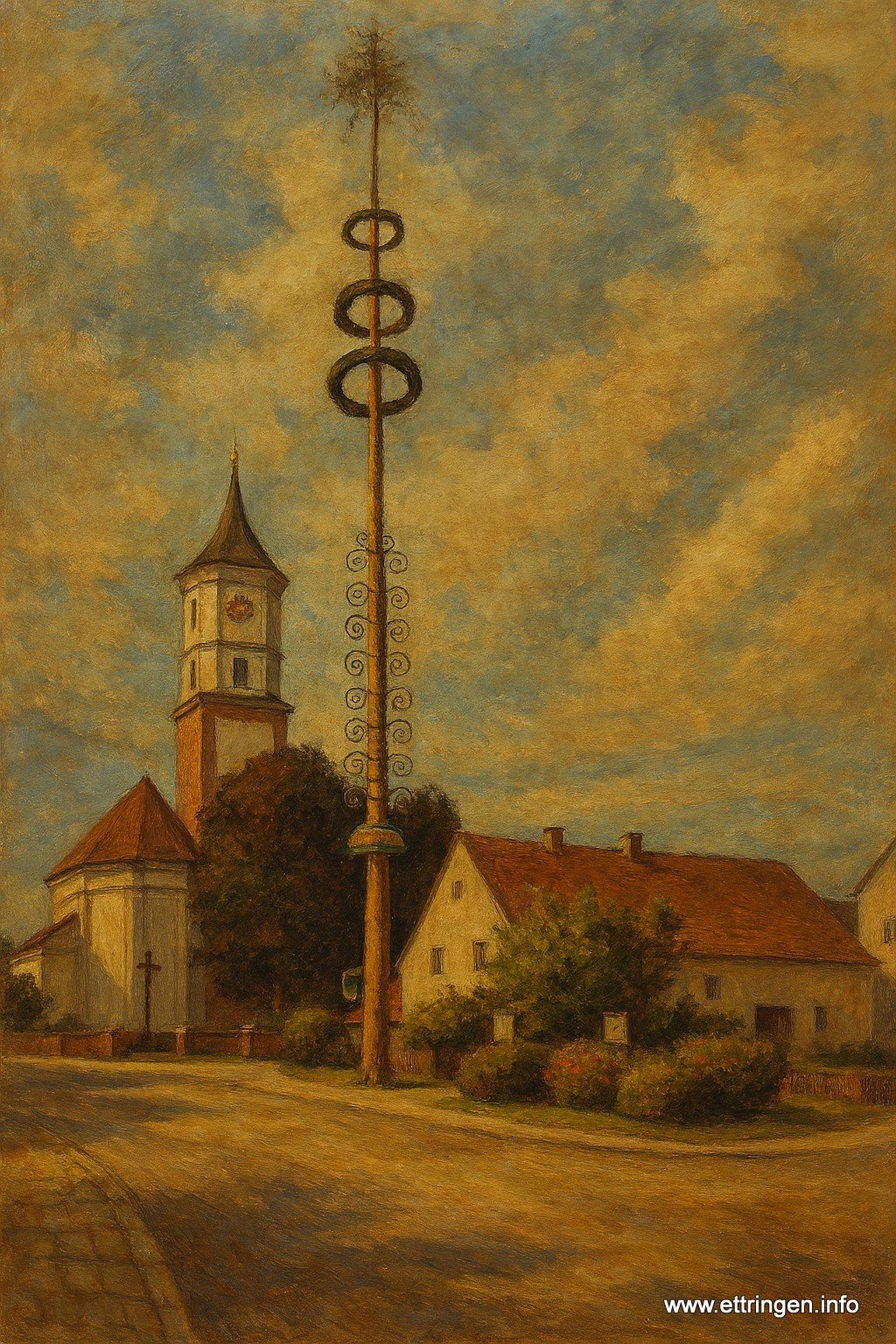 Dieses von Copilot erstellte Gemälde zeigt die Ettringer Pfarrkirche St. Martin.