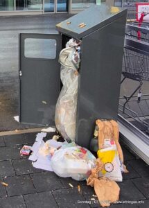 Am neu eröffneten Netto-Markt wird der Abfallbehälter offenbar von einigen als kostenlose Müllentsorgungsstelle missbraucht.