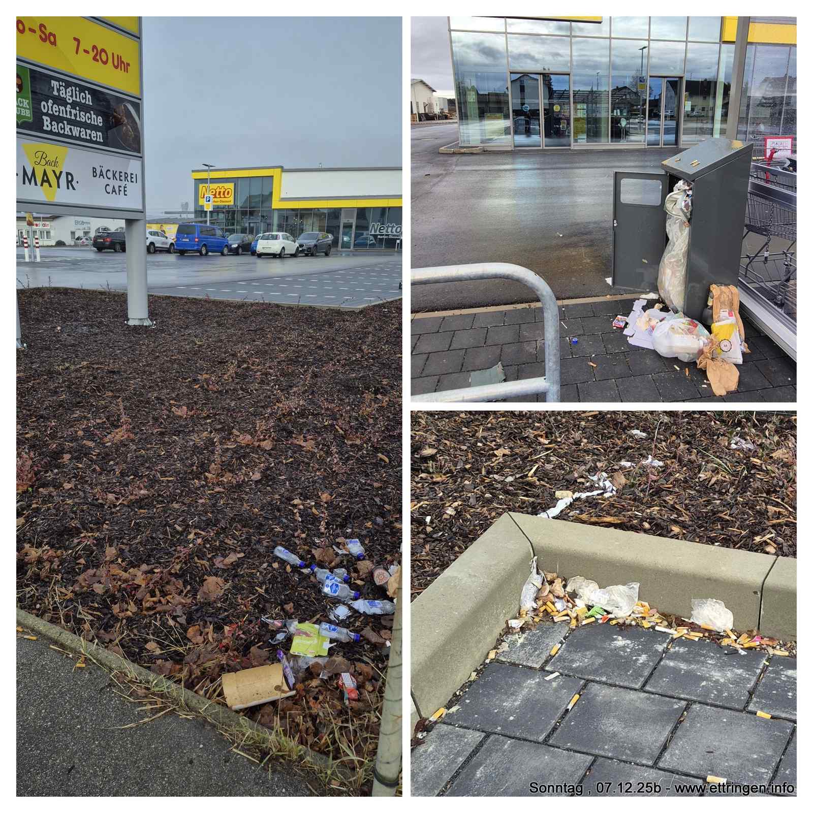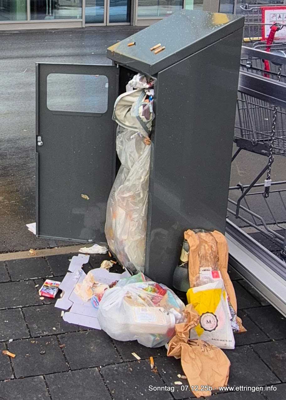 Am neu eröffneten Netto-Markt wird der Abfallbehälter offenbar von einigen als kostenlose Müllentsorgungsstelle missbraucht.