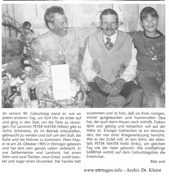 Peter Mayer (Mitte) ist am 24. Oktober 1905 in Ettringen geboren und hat dort sein ganzes Leben verbracht.(…)