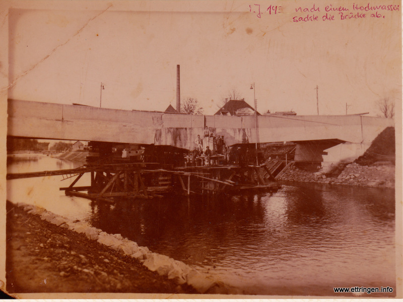 Als im Jahre 1931 ein ungeheuer reißendes Hochwasser von Türkheim herunterkam, wurde dieser Pfeiler unterspült, und die Fahrbahndecke senkte sich in der Mitte um 90 cm, so dass Einsturzgefahr bestand und der Verkehr gesperrt werden musste.