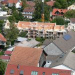 ➡ Blick vom Pfarrgarten ➡ St. Martin ist eingerüstet