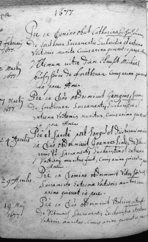 Jedoch sind sie ab Januar 1652 wieder vollständig vorhanden. Angelegt wurden sie von einem Pfarrer namens Servatius Scharph von den Praemonstratensern in Steingaden.
