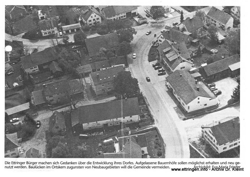 (…) In der rechtwinkligen Kurve der Staatsstraße lag die „Kreuzschmiede“ in der Hauptstraße 19, bis sie 1889 schräg gegenüber in die Hauptstraße 14 verlegt wurde. Hier arbeitete bis in die sechziger Jahre Schmiedemeister Zech mit seinem Sohn. Neben der Werkstatt stand ein Schleifstein, der nach altem Recht von allen Bauern des Dorfes unentgeltlich benutzt werden durfte. Später diente die Schmiede viele Jahre bis 2002 als Getränkemarkt (…) „Drei schwäbische Dörfer erzählen“ von Dr. Martin Kleint